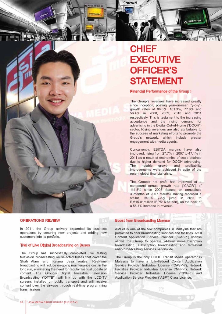 Aug 05 2019 On July 24 Asia Media announced to Bursa Malaysia that it had triggered the PN17 criteria after it lost its contract with bus operators in both Klang Valley and Johor which resulted in the loss of its major business as the group was unable to continue to operate its transit TV network and advertising business. We are a media provider offering high-quality infotainment and targeted advertising through the use of digital electronic displays installed in various outdoor premises. COMPANY BACKGROUND OF ASIA MEDIA GROUP BERHAD Asia Media Group Berhad is one of the listed company in Bursa Malaysia under telecommunication and media sector and the market leader in the out-of-home digital media and advertising industry which is located at Puchong Kuala Lumpur and has been established since 2007.