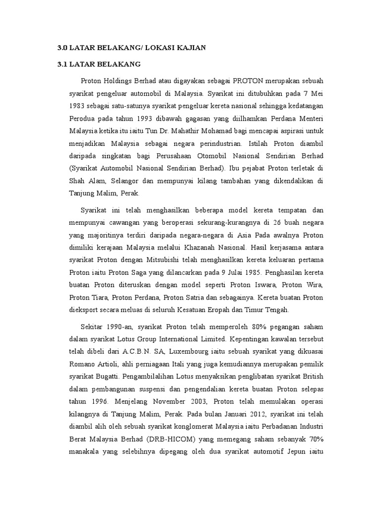 Doc Proton Abdul Rahim Academia Edu. 5 30 LATAR BELAKANG Syarikat Proton atau Proton Holdings Berhad PHB ialah syarikat perbadanan Malaysia yang bersifat aktif dalam reka bentuk kereta mengeluarkan model kereta secara besar-besaran mengedarkan dan dalam penjualan. Latar Belakang Syarikat Proton.