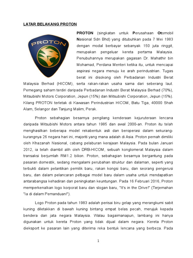 Rise And Down Docx 1 0 Profil Syarikat 1 1 Latar Belakang Syarikat Proton Holdings Berhad Atau Lebih Dikenali Sebagai Proton Merupakan Salah Satu Course Hero. Rise And Down Docx 1 0 Profil Syarikat 1 1 Latar Belakang Syarikat Proton Holdings Berhad Atau Lebih Dikenali Sebagai Proton Merupakan Salah Satu Course Hero. Proton ditubuhkan pada tahun 1983 di mana Proton merupakan satu-satunya syarikat nasional.